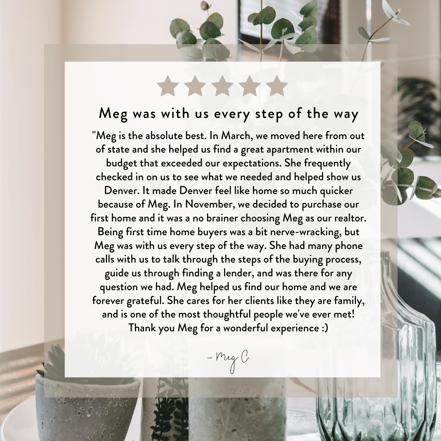 I appreciate being your go-to resource for all things Real Estate. Please don't hesitate to reach out to me at any time if I can assist with any help you may need. Feel free to pass my information along to anyone in need of a dedicated Real Estate Agent; all referrals are greatly appreciated.